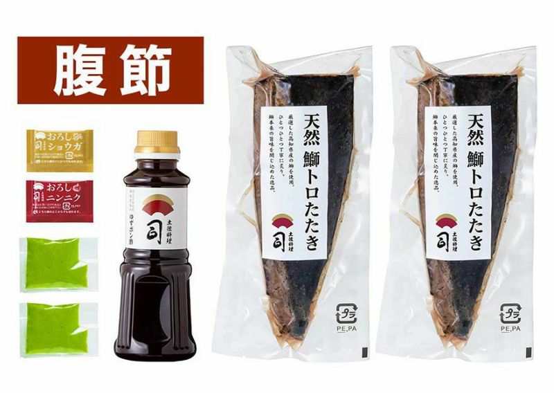 名物一本釣り鰹のたたきと鰤トロたたきを一緒に楽しめる、贅沢なセットを数量限定でご用意しました。どちらも解凍して、切るだけでご家庭で極上の味わいをお楽しみいただけます。