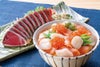帆立とサーモンを特製タレで漬けこみました。 いくら醤油漬けとともに丼はもちろん、手巻き寿司やお酒の肴として、司自慢の鰹のたたきとご一緒にお楽しみください。