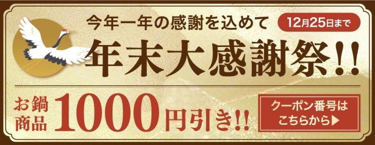 ※対象のお鍋ご購入で使用可能。会員様のみご使用いただけるクーポンです。